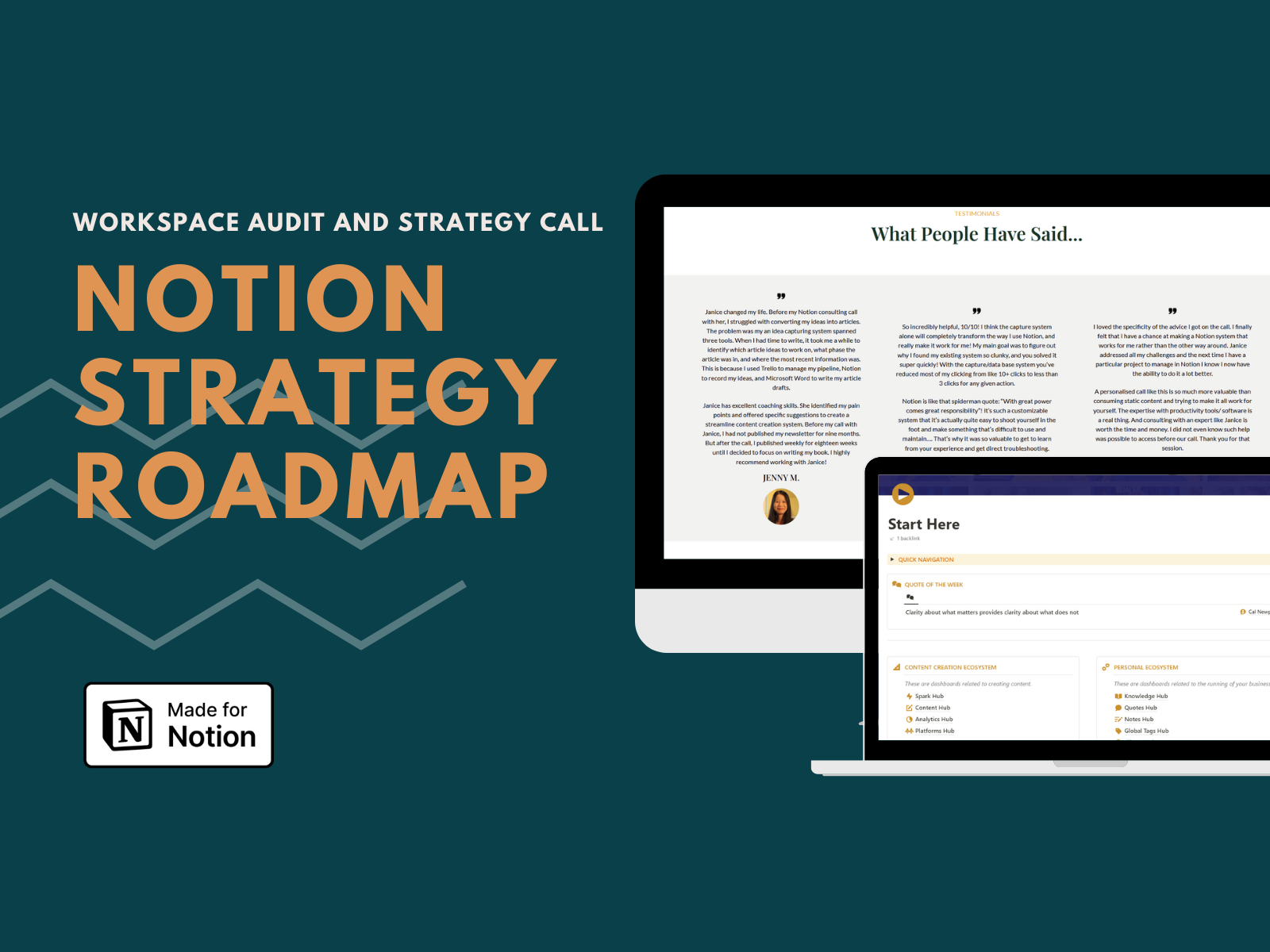 Get clarity on whatâs not working with your Notion workspace and get a personalised action plan on how to fix it. Struggling to use effectively Notion to organise and manage your life and business?Iâll do a complete review of your Notion workspace (structures, workflows, clean up, dashboard design, database design, organisation) and show you the gaps and what's missing.And I'll also give you a personal action plan on how to fix it, so you stop feeling so frustrated with Notion and make Notion work for you.Notion is super powerful tool.But only when it's built and used in the right way. Learn more here: https://slowisbetter.co/#strategy or email [email protected]